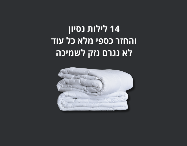 הנחה מיוחדת לבלאק פריידיי 25% על כל השמיכות הכבדות- מחושבת אוטומטית בדף התשלום ותקפה עד לסייבר מונדאי 1 לדצמבר כולל
